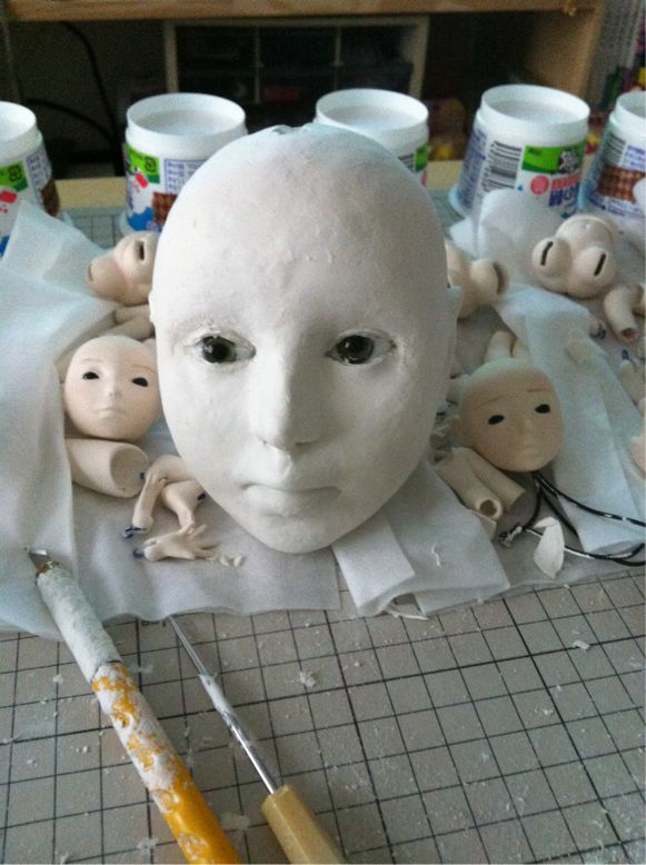小さい手のひらサイズは、胡粉が足りなくなったので放置中。月末塗装して来月頭には髪の毛貼り始めたいです。